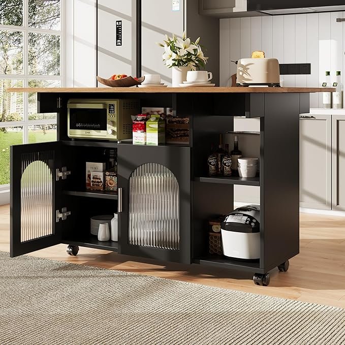 Isla de cocina, moderno, armario de cocina, carrito de servicio desmontable, armario de bufé, carrito de comedor con vetas de madera, mesa de comedor multifuncional con espacio de